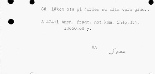 //// Så låtom oss på jorden nu alla vara glad.. //// A 424:1 Amen. fragm. not.kom. insp.Rtj. //// 10660:68 y. //// RA //// .J jm* ////