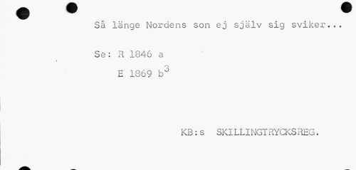 //// Så länge Nordens son ej själv sig sviker... //// Se: R 1846 a //// i //// E 1869 b3 //// KB:s SKILLINGT RYCKSREG. ////