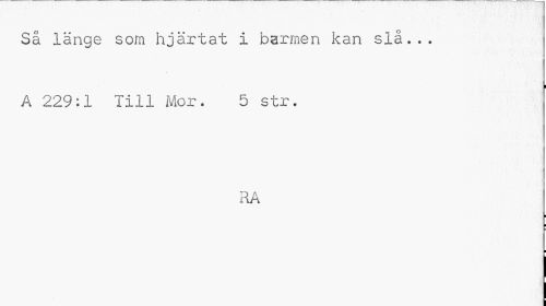 //// Så länge som hjärtat i barmen kan slå... //// i //// A 229:1 Till Mor. 5 str. //// RA //// i //// i ¦ //// l ////