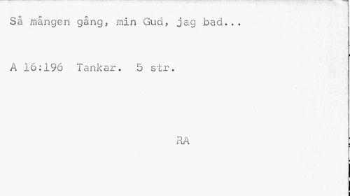 //// Så mången gång, min Gud, jag bad... //// i //// A 16:196 Tankar. 5 str. //// RA ; ////