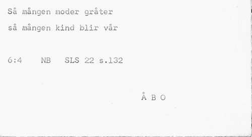 //// Sä mången moder gråter så mången kind blir vår //// 6:4 NB SLS 22 s.132 //// I //// i //// ÅBO //// 1 //// i ////