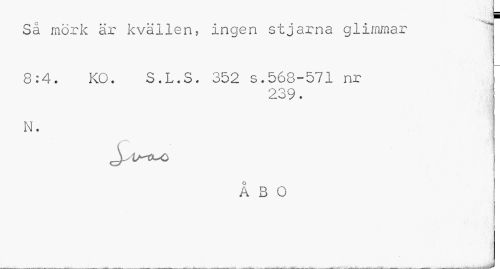 //// ¦ //// t - //// Sä mörk är kvällen, ingen st jama glimmar 8:4. KO. S.L.S. 352 s.568-571 nr //// 239. //// N. //// ^lA-ÖUO //// i //// ÅBO ////