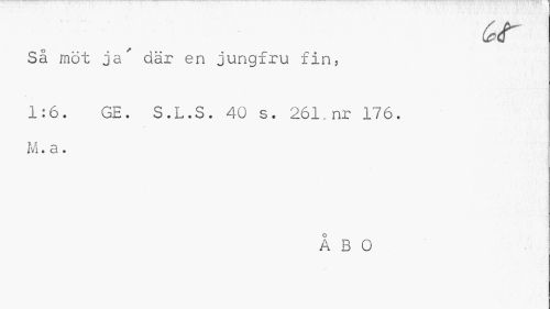 //// _... _ Gt //// Så möt ja' där en jungfru fin, //// 1:6. GE. S.L.S. 40 s. 261,nr 176. M. a. //// ÅBO ////