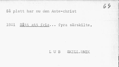 //// •• - - » " - ¦ -n ¦». 4 4 **...•-> //// Så platt har nu den Ante-christ 1801 Satt att fria... fyra särskilte, //// ¦ //// L U B SKILL.UNIK ////