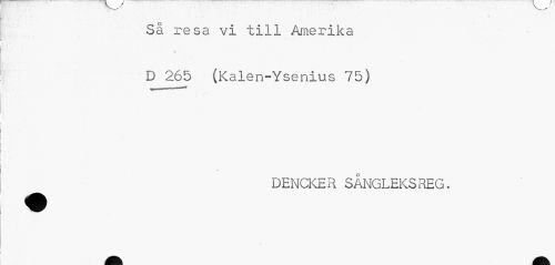 //// Så resa vi till Amerika D 265 (Kalen-Ysenius 75) //// DENCKER SÅNGLEKSREG. ////