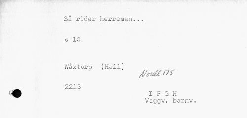 //// Så rider herreman... s 13 //// Wåxtorp (Hall) //// j/<ndé nr //// 2213 //// Vaggv. barnv. ////