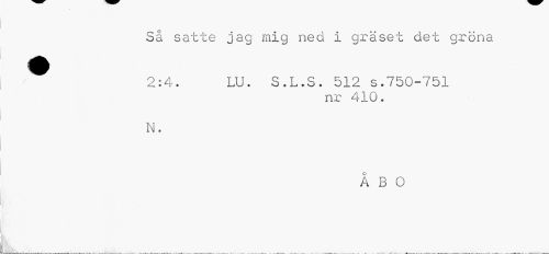 //// Så satte jag mig ned i gräset det gröna //// 2:4. LU. S.L.S. 512 s.750-751 //// nr 410. //// N. //// ÅBO ////
