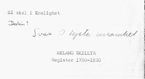 //// Så skal i Enslighet //// MELANG SKILLTR Register 1700-1830 //// • i //// ¦ ////