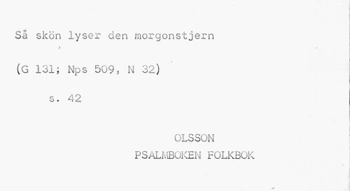 //// ; - £ //// Så skön lyser den morgonstjern //// » //// (G 131; Nps 509, N 32) //// s. 42 //// \ ( //// OLSSON PSALMBOKEN FOLKBOK ////