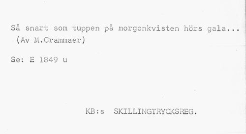 //// Så snart som tuppen på morgonkvisten hörs gala... (Av M.Crammaer) //// Se: E 1849 u //// KB:s SKILLINGTRYCKSREG. ////