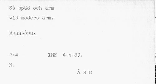 //// Sä späd och arm vid moders arm. //// Vaggsång. //// 3:4 INE 4 s.89. //// N. //// ÅBO ////