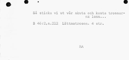 //// Sä sticka vi ut vår skuta och kasta trossarna loss... //// B 46:2,s.212 Lättmatrosen. 4 str. //// RA ////