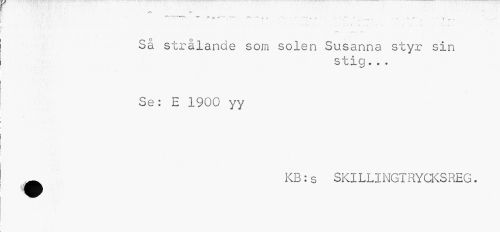 //// iTi //// * * * r ' • • B- _ " ... , t 1 "*" * f . ^ //// . i f i //// —-»-, mit. — //// o o //// Sa strålande som solen Susanna styr sin //// * //// S tiQ# • • //// Se: E 1900 yy //// KB:s SKILLINGTRYCKSREG. ////