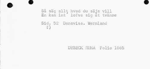 //// Sa säg //// allt hvad du säja vill En kan int lofva sig åt tvänne //// Sid. 52 Dansvisa. Wermland f) //// DYBECK RUNA Folio 1865 ////