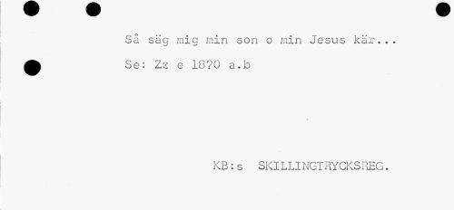 //// Så säg mig min son o min Jesus käx-. . . 0 Se: Zz e 18?0 a.b //// KB:s SKILLINGTRYCKS REG. ////