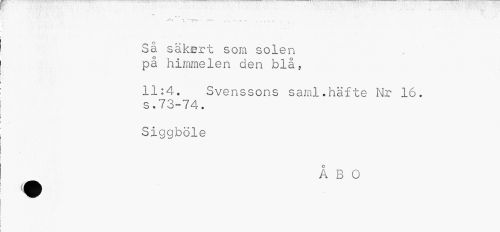 //// ''.'i'."' 1 • '.') > ' ' ' ' « - ' .'¦ ' ' . " ' ' //// W ^ --- - ^ . .. - //// V" • i » - . t ' * ' //// Sä säkert som solen på himmelen den blå, //// 11:4. Svenssons saml.häfte Nr 16. s.73-74. //// Siggbole //// ÅBO ////