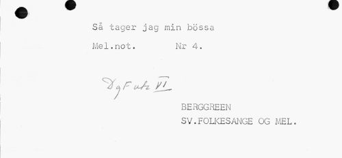 //// c //// Så tager jag min bössa Mel.not. Nr 4. //// % F C+A IL //// BERGGREEN //// SV.FOLKESANGE OG MEL. ////