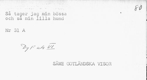 //// Så tager jag min bössa och så min lilla hund //// Nr 31 A //// ¦ i //// SÄWE GOTLÄNDSKA VISOR ////