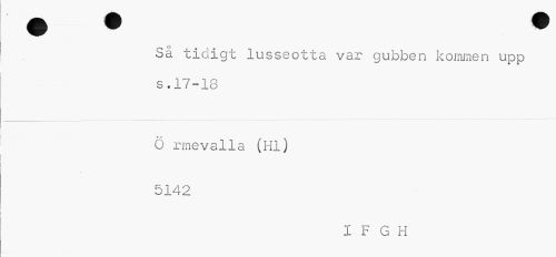 //// Så tidigt lusseotta var gubben kommen upp s.17-18 //// ö rmevalla (Hl) 5142 //// I F G H ////