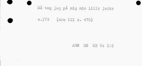 //// Så tog jag på mig min lilla jacka 0 s.173 (Arw III s. 475) //// ARW MS KB Vs 2:2 ////