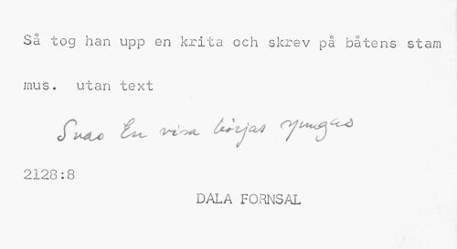 //// Så tog han upp en krita och skrev på båtens stam mus. utan text //// 2128:8 //// DALA FORNSAL ////