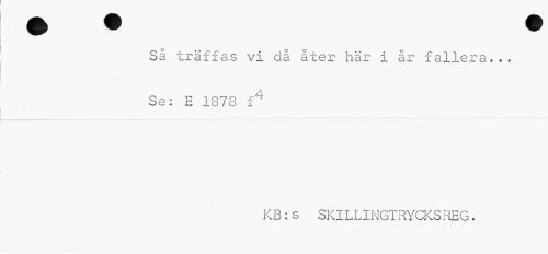 //// Så träffas vi då åter här i år fallera... Se: E 1873 f4 //// KB:s SKILLINGTRYCKS REG. ////