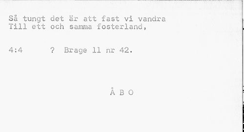 //// Sä tungt det är att fast vi vandra L //// Till ett och samma fosterland, //// 4:4 ? Brage 11 nr 42. //// ÅBO i ////