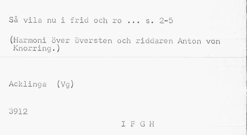 //// Så vila nu i frid och ro ... s. 2-5 //// (Harmoni över översten och riddaren Anton von Knorring.) //// Acklinga (Vg) //// ! //// 3912 //// I F G H ////
