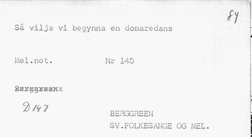 //// fl //// Så vilja vi begynna en domaredans //// i //// • Mel.not. Nr 145 //// ; BERGGREEN j //// SV.FOLKESANGE OG MEL. ////