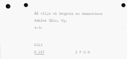 //// Så vilja vi begynna en domaredans Askims Råda, Vg. //// s. 3. -- //// 5313 //// D 147 I F G H //// i ¦¦ " i ////