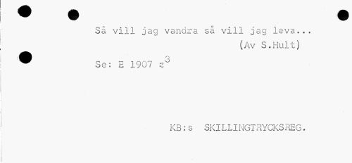 //// Sä vill jag vandra så vill jag leva... //// (Av S.Hult) //// ® Se: E 1907 z3 //// KB:s SKILLINGTRYCKSREG. ////