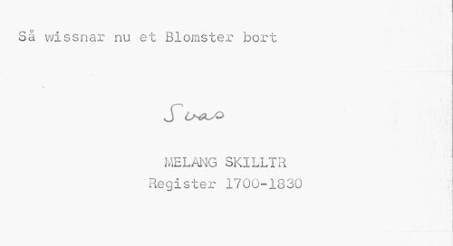 //// Så wissnar nu et Blomster bort //// J O^uo //// MELANG SKILLTR Register 1700-1830 ////