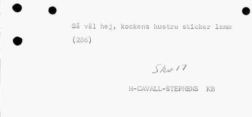 //// Så väl hej, kockens hustru sticker lamm //// JAa / 7 //// H-CAVALL-STEPHENS KB ////