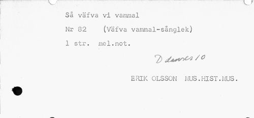 //// Så väfva vi vammal //// Nr 82 (Väfva vammal-sånglek) //// 1 str. mel.not. //// ERIK OLSSON MUS.HlST.MUS. //// - ////