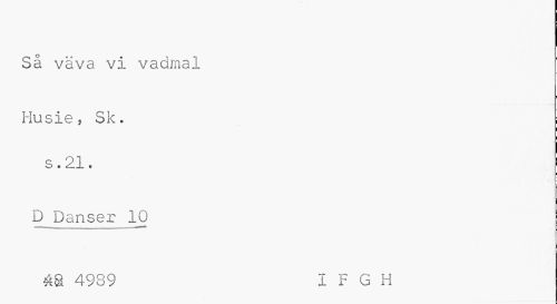 //// Så väva vi vadmal //// Husie, Sk. s. 21. //// D Danser 10 m 4989 I F G H ////