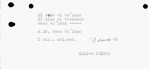 //// Så väva vi va lrnan //// å //// Så slae vi tesamman Veva va lrnan --- //// Å 245 Veva Va'lrnan 5 str. , mel. not. SO //// MOLI-N ÖREBRO ////
