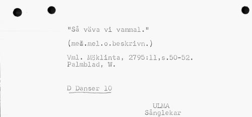 //// stSä väva vi vammal.11 //// (meffi .mel. o. beslcrivn.) //// Vml. MÖklinta, 2795:11,s.50-52. Palmblad, W. //// D Danser 10 //// o ULMA Sånglekar ////