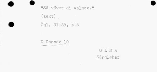 //// nSå väver di valmer.11 (text) //// Ögl, 91:35, s .6 //// D Danse -C 10 //// U L M A Sånglekar ////