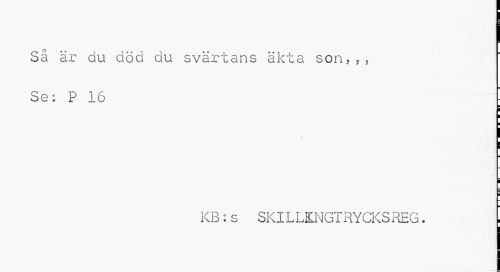 //// Så är du död du svärtans äkta son,,, //// Se: P 16 - //// ¦ //// i ¦ //// KB:s SKILLKNGTRYCKSREG. ! ////