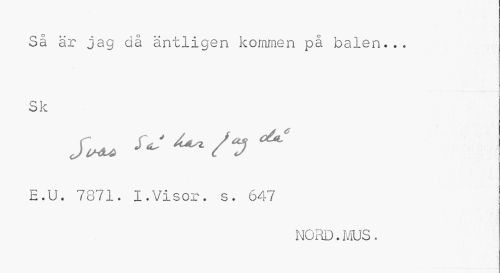 //// oä aic jag ^^ a ntligen kommen pa balen... | //// Sk //// ^ ^ E.U. 7871. I.Visor. s. 647 //// NORD.MUS. ////
