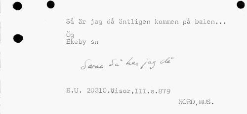 //// Sä är jag då äntligen kommen på balen... //// * a //// ^^ Eke by sn //// JI* ^/V ^ //// E.U. 20310.Visor,III.s.879 //// NORD MUS. ////