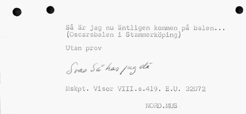 //// Så är jag nu äntligen kommen på balen... (Oscarsbalen i Stammerköping) //// Utan prov //// Mskpt. Visor VIII.s.419. E.U. 32072 //// NORD.MUS ////