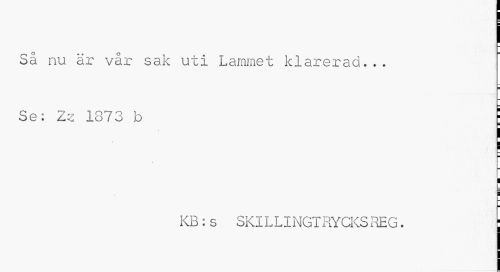 //// Så nu är vår sak uti Lammet klarerad... //// Se: Zz 1873 b ; //// KB:s SKILLINGTRYCKSREG. ; ////
