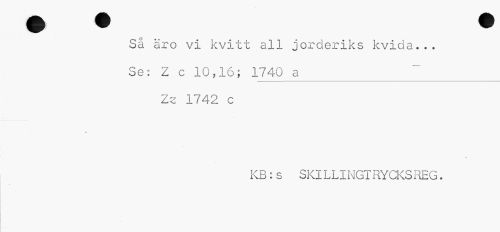 //// Så äro vi kvitt all jorderiks kvida... //// Se: Z c 10,16; 1740 a_ //// Ze 1742 c //// »t //// KB:s SKILLINGTRYCKSREG. ////