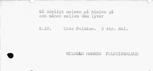 //// Så ödsligt molnen på himlen gå och månen mellem dem lyser //// S.18. Orsa Polskan. 2 str. Mel. ^ WILHEMM HANS EN FOLKVIS EALBUM ////