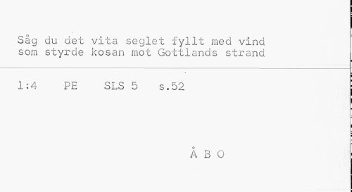 //// Såg du det vita seglet fyllt med vind som styrde kosan mot Gottlands strand //// i i //// 1:4 PE SLS 5 s.52 j //// ¦ //// i ¦ //// I //// ÅBO ; ////