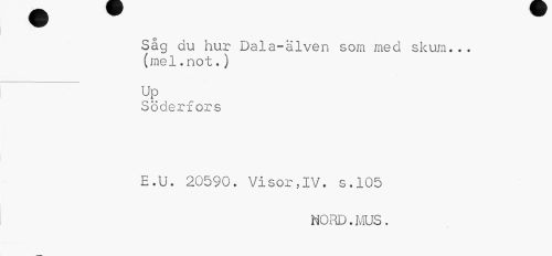 //// Såg du hur Dala-älven som med skum... (mel.not.) //// _ Up //// Söderfors //// E.U. 20590. Visor,IV. s.105 //// NORD.MUS. ////