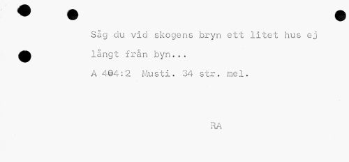 //// Såg clu vid skogens bryn ett litet hus ej långt från byn... A 4©4:2 Musti. 34 str. mel. //// RA ////