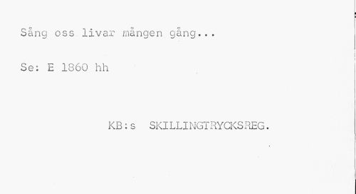 //// ¦ //// i //// Sång oss livar mången gång... Se: E 1860 hh //// KB:s SKILLINGTRYCKSREG. //// « ////