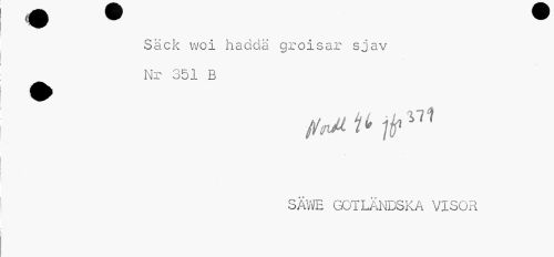 //// Säck woi haddä groisar sjav Nr 351 B //// jr* W W 5'' //// SÄVtE GOTLÄNDSKA VISOR ////